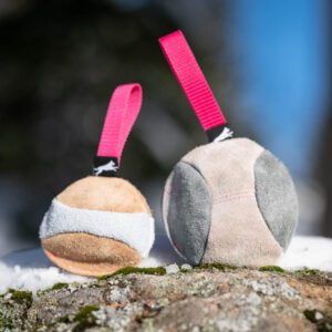 Täytteen määrä ja siten pallon paino voi hieman vaihdella lelusta toiseen, sillä jokainen tuote valmistetaan käsityönä. Ethän anna koiran leikkiä lelulla yksin, valvo aina koirasi leikkimistä. Aito nahka ja lampaanvilla voivat houkutella pureskelemaan lelua, joten ethän anna koirasi repiä ja niellä paloja/materiaalia. Lelu on tarkoitettu yhdessä ohjaajan kanssa leikkimiseen. Suurin osa koirista innostuu leikkimään näistä aidoista materiaaleista valmistetun lelun kanssa erinomaisesti.